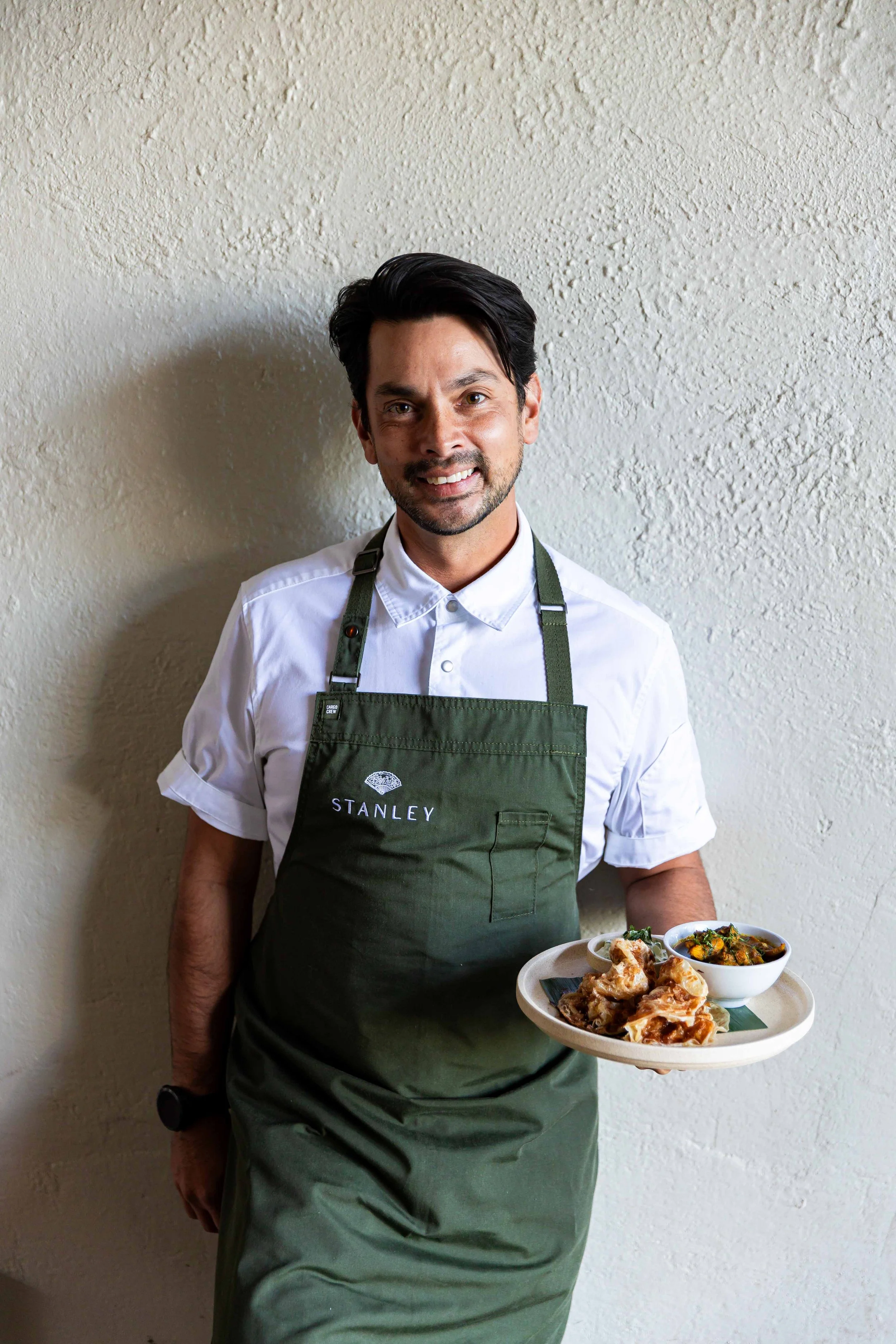 Inspired by childhood memories of vibrant dinner parties, Stanley Head Chef, Louis Tikaram brings a deeply personal dish to the table: his grandmother’s Fijian chicken curry, served with refreshing raita, paired with Lune’s fresh roti made from their legendary laminated croissant dough.